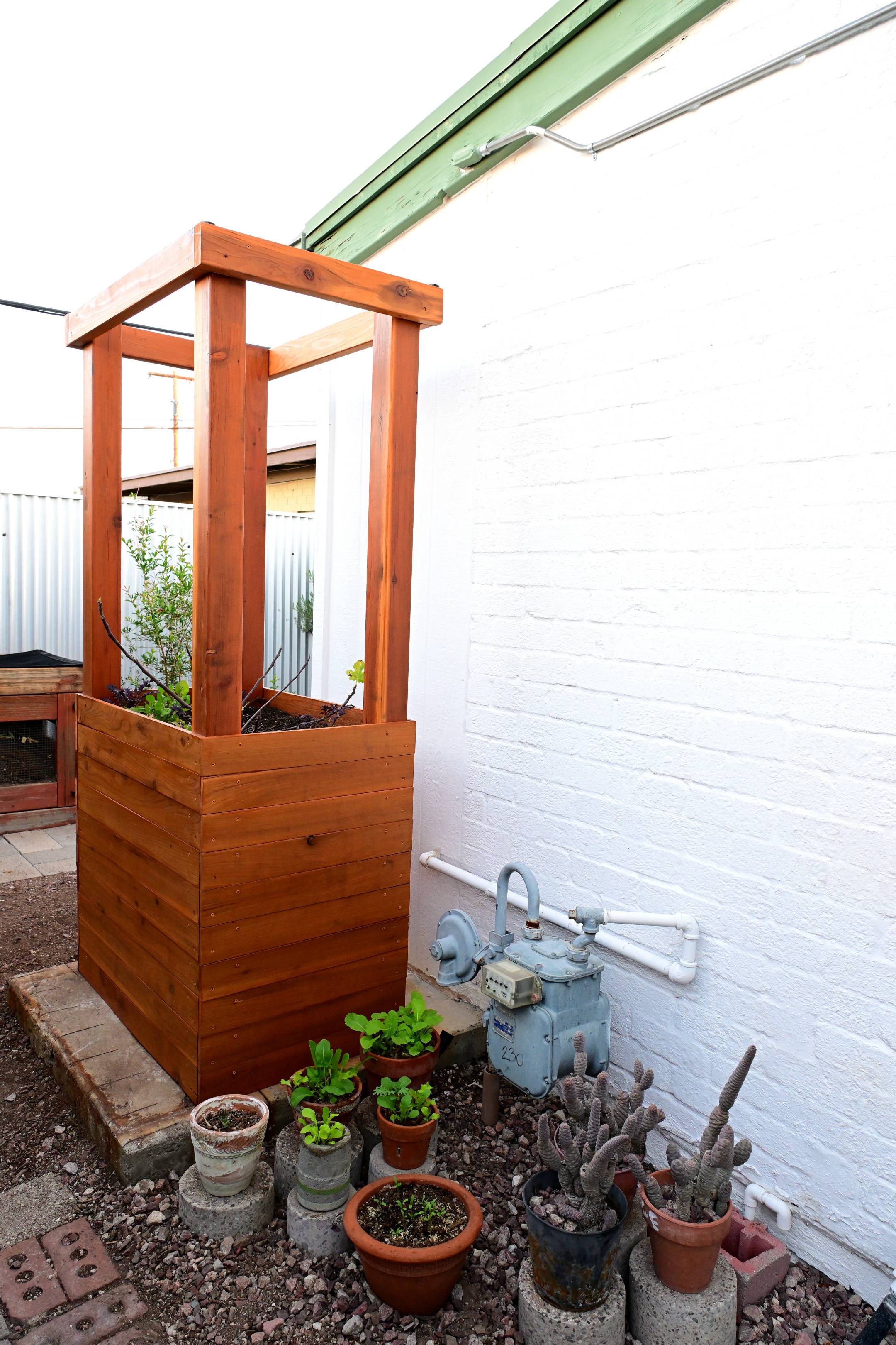 Why not? Because there my washing machine pump isn't strong enough to move water up to this raised bed.